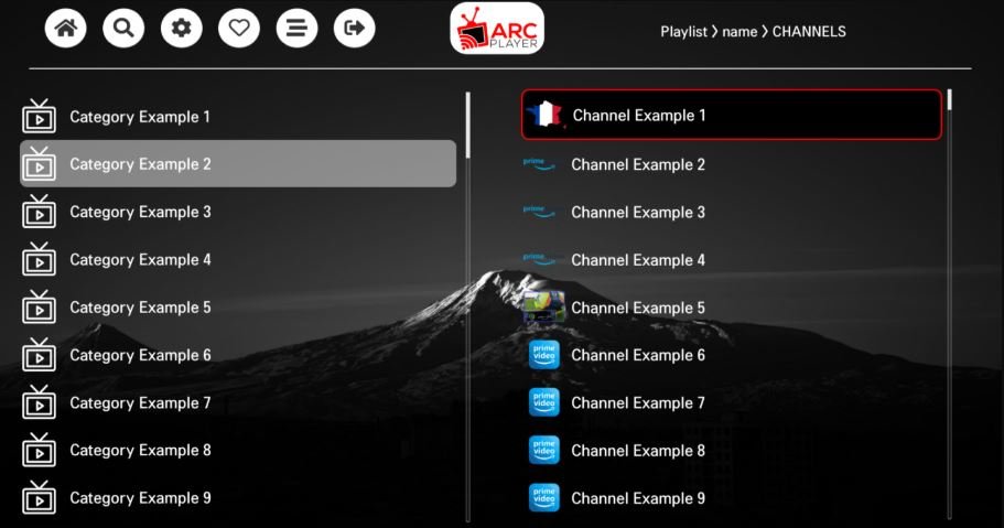 ARC Player est un lecteur multimédia avancé et performant prenant en charge plusieurs listes de lecture aux formats M3U et M3U8. Il permet d’organiser le contenu en différentes catégories :
