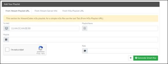 Ajouter le lien M3U de votre abonnement IPTV et cocher la case “I’m not a robot”.